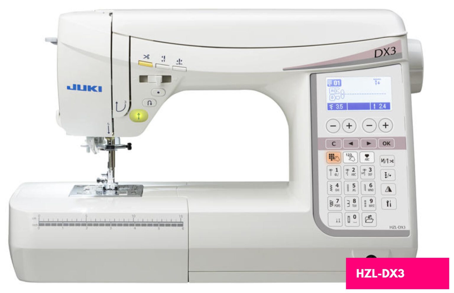 Tämä tietokoneistettu ompelukone sisältää JUKI:n teollisen ompelukonetekniikan tuottamaa erinomaista piston laatua ja ompelukykyä. Lisäksi HZL-DX3 on varustettu 155 ommelkuviolla, mukaan lukien 15 elektronisesti ohjattua napinläpeä ja vapaan liikkuvuuden ominaisuudet pudotussyötöllä, jotta saat vapauden luoda ja suunnitella. Nauti tyytyväisyydestä luoda oma mallisi korkealaatuisilla viimeistelyillä, mukaan lukien overlock-ompeleet ja pitsikuviot.