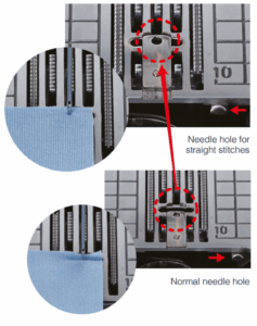 Suorapistolevy ehkäisee ohuiden kankaiden työntymistä pistolevyn neula-aukkoon.