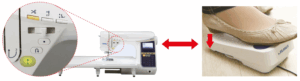 Ohjelmoi jalkasäätimen kantapäätoiminto mieleiseksi. Voit valita minkä / mitkä toiminnot ompelukone suorittaa kun painat jalkasäädintä kantapäällä; lankojen leikkaus, päättely tai yksittäinen pisto. Käynnistyksen nopeus on myös säädettävissä hitaalle, normaalille tai nopealle. Huom! kuvassa DX7, jossa on DX3:sta poiketen paininjalan nosto.