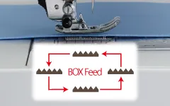BOX Feed -syöttöjärjestelmä pysyy kosketuksissa kankaaseen normaalia pidempään, muodostaen aina parhaan sauman.