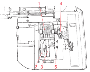 Alasiepparin langoituksen helpotin työntää langan automaattisesti paikoilleen sieppariin.