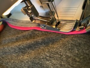 - syötä edestä 20 mm leveää nauhaa joka taittuu kerran kankaan kanttinauhan väliin.
