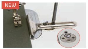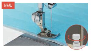 Nyt varustettu samalla mekanismilla kuin JUKI-teollisuusompelukoneet, jotka estävät peittojen ja sametin epätasaisen ompelun sekä neulekankaiden venytysompeleen. Paininjalka kelluu 0–2 mm materiaalin yläpuolella, mikä tekee siitä hyödyllisen paksujen saumojen ompelemiseen.