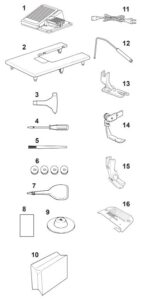Erillinen kiinnitysalusta kangasohjaimien ja muiden lisälaitteiden asentamiseen. Tämä pidentää ompelukoneen käyttöikää, koska se on vaihdettavissa, jos kiinnitysreiät vaurioituvat