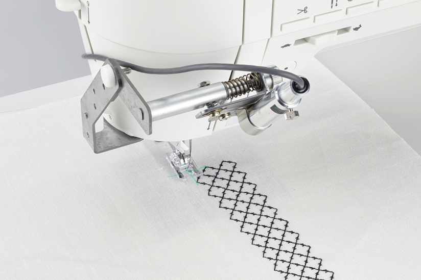 Osoittimen avulla neulan aseman voi tarkistaa laskematta neulaa työhön.